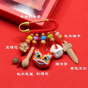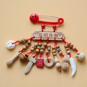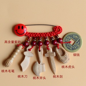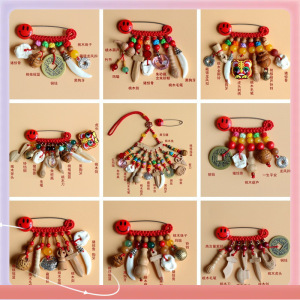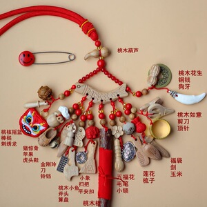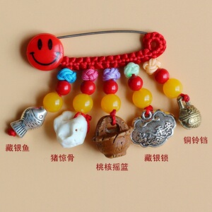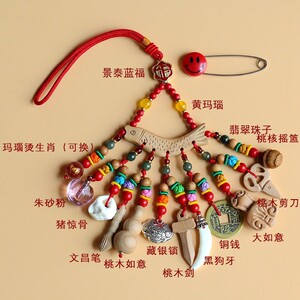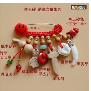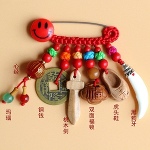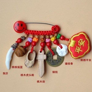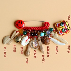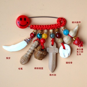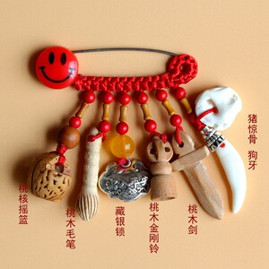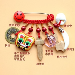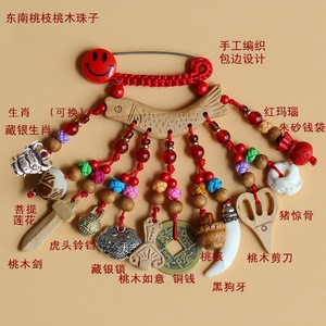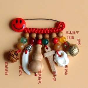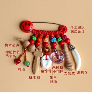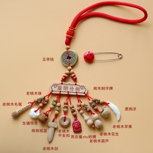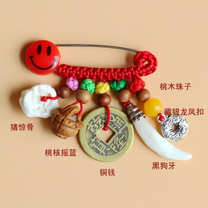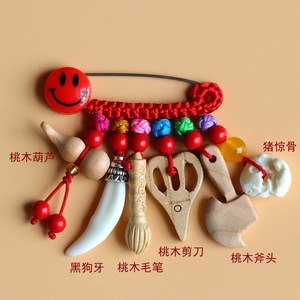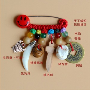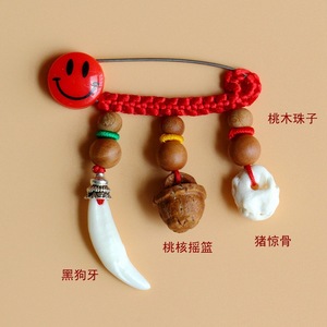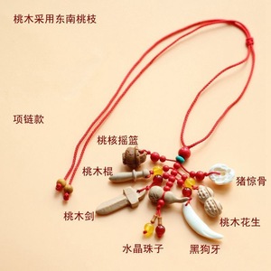 ➺ M1-18 ベビーピンペンダントピーチウッドブタ骨犬歯赤いロープ編組ペンダントジュエリーベビーペンダント