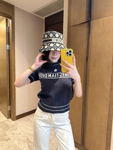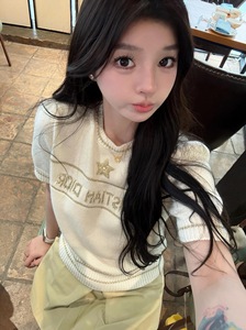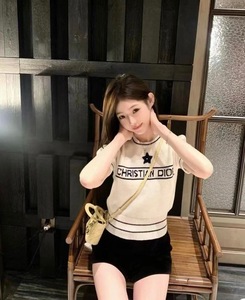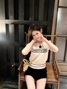 高定正确版25年新款经典小香风金银线五角星字母刺绣短袖针织衫女