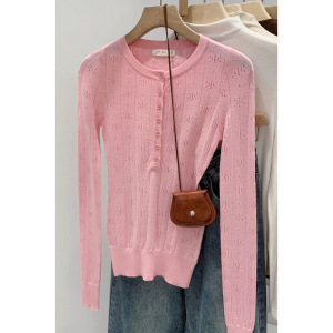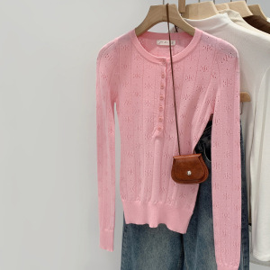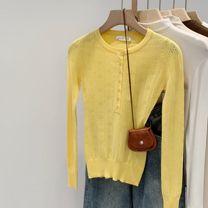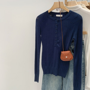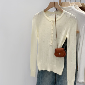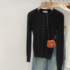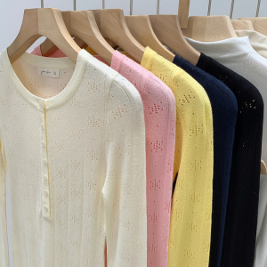 品牌现货新款辣妹镂空毛针织衫打底亨利长袖修身显瘦女内搭上衣女