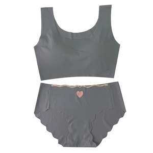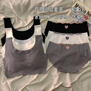 冰丝无痕少女内衣套装运动学生聚拢显胸吊带无钢圈舒适文胸背心款