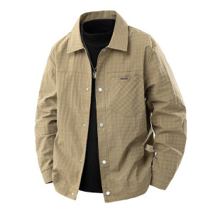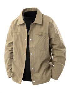 啄木鸟高级感立体格纹翻领夹克外套男士春秋季新款潮酷男装上衣服