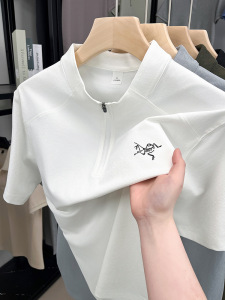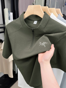 鸟家刺绣速干半拉链短袖t恤夏季新款休闲户外运动男装绣标潮