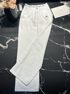 alo字母刺绣拼接牛仔裤女网红潮牌高腰显瘦直筒牛仔裤宽松阔腿裤