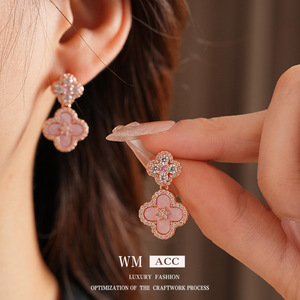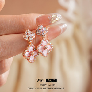 シルバーニードルジルコンフラワーマザーオブパールペンダントイヤリング韓国風甘い小さな新鮮なイヤリング気質ライト高級ハイエンドイヤリング