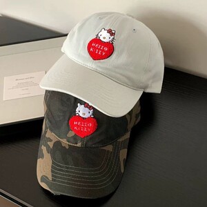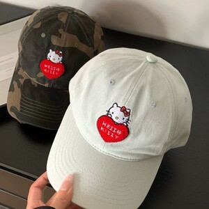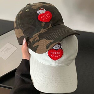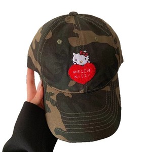 可爱刺绣爱心迷彩kitty猫棒球帽女软顶大头围户外韩国街头鸭舌帽