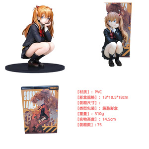福音战士EVA明日香校服手办摆件 美少女蹲姿明日香动漫手办模型