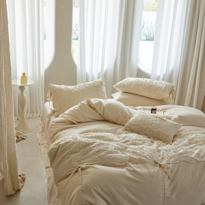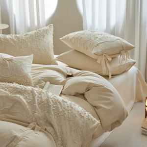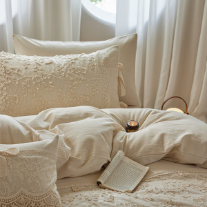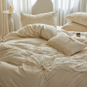 慵懒法式奶油风棉麻四件套吸湿透气四季款蕾丝被套女士床品
