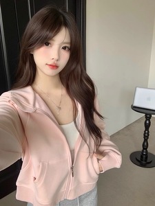 粉色卫衣外套女秋冬款2025新款早秋chic短款连帽上衣休闲穿搭女款