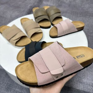 TEEMAZZI 牛革スエードベルクロビーチサンダル男性と女性のための本革コルク底ビルケンシュトック靴夏のアウターウェアサンダル