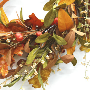 跨境新品亚马逊万圣节秋色花环南瓜浆果门挂丰收节藤圈感恩节花圈