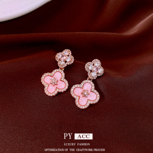 银针锆石花朵贝母吊坠耳环小清新时尚轻奢耳钉甜美百搭耳饰女批发