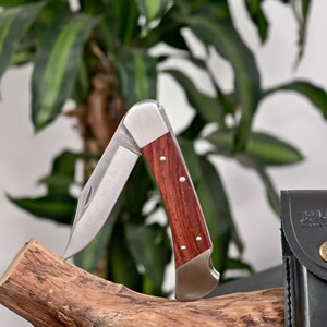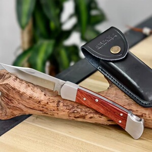 跨境外巴克110折刀野外求生迷你小刀红檀镶钢多功能水果刀防身刀