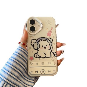 情侣音乐小狗支架适用苹果17PROMAX手机壳16PRO彩银15PROMAX/14/X