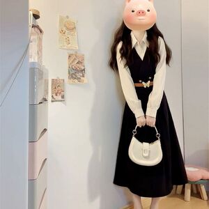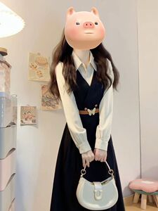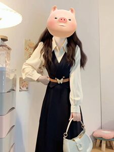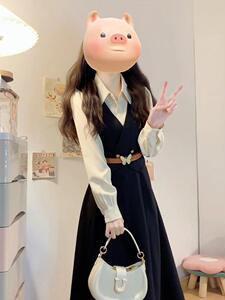 女性のためのフレンチ長袖シャツドレス初秋の服装2025新しい気質デザインニッチフェイクツーピースロングスカート