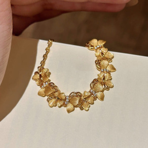 沙金饰品仿真金拉丝纹蝴蝶纷飞手链女轻奢高级感久不掉色首饰批发