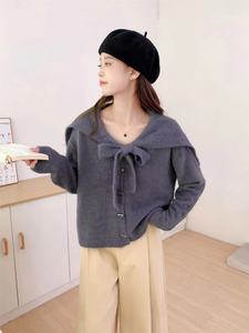 2025 秋と冬の新しい模造ミンクベルベットニットカーディガンデザインネイビーカラーソフトワックス状韓国セータージャケット女性のための