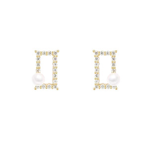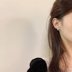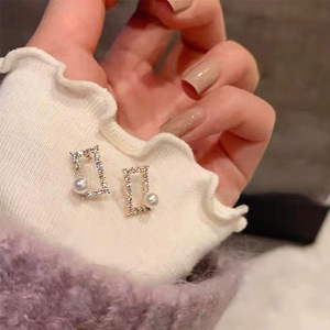 银针复古镶钻珍珠中空方形耳钉韩国时尚小巧高级感耳环简约耳饰