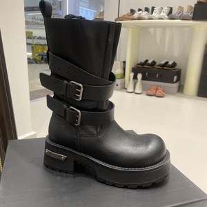 2025厚底中筒靴复古大头骑士靴毒液皮带扣马丁靴女西部牛仔机车靴