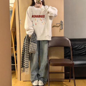 アメリカンフラワーグレーキャップレス右肩ラウンドネック薄手スウェットシャツレディース2025年秋新作ホットスタイルプチトップ