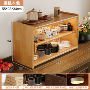 無垢材テーブル収納キャビネット防塵収納ラックカップホルダー小さなガラスキャビネットドアサイドキャビネット多層ティーセット収納ラック