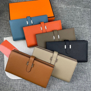 H家牛皮长款超薄钱包中长款荔枝纹女士休闲气质真皮驾驶证包钱夹