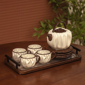 JTH咖啡色皱褶4杯+壶+HS大号木托盘