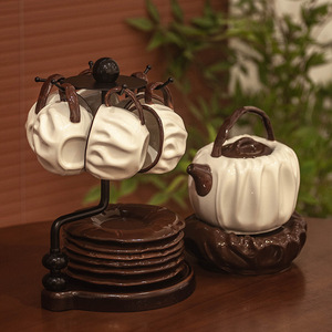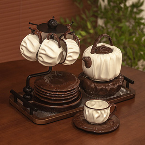 JTH咖啡色皱褶6杯6碟+L形杯架+1壶1底座