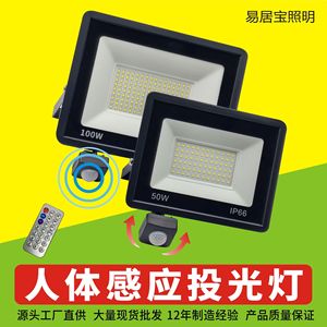 源头工厂人体感应投光灯户外带遥控器雷达红外线led感应投光灯