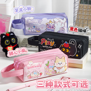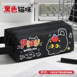 简约可爱少女心大容量笔袋学生文具笔袋铅笔盒黑色猫咪文具收纳袋
