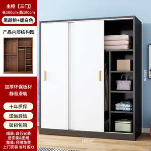 3门【黑胡桃+白】长160cm主柜 升级加厚♜✓
