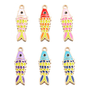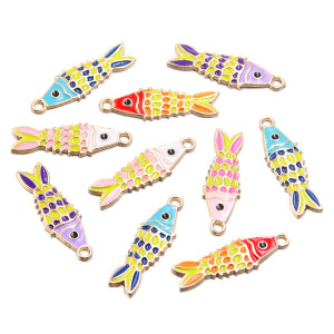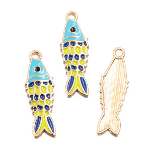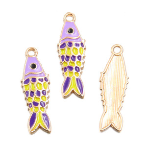 5彩小鱼吊坠 8*26mm KC金合金滴油魅力挂件 首饰吊坠箱包配饰