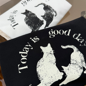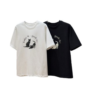 MC25夏新品气质萌宠猫咪字母印花T恤洋气减龄时尚棉质宽松2色短袖