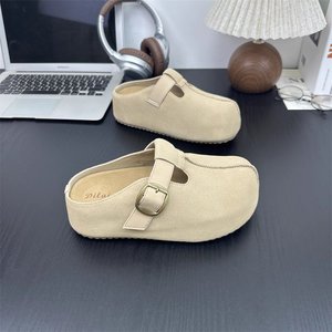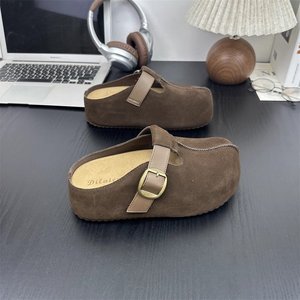 2025秋季新款6cm轻便松糕底皮带扣休闲女潮流时尚镂空勃肯包头拖