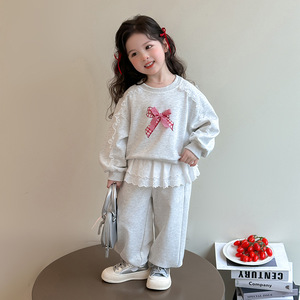 女小童蝴蝶结套装春秋款女宝宝花边卫衣春季2025新款小女孩两件套