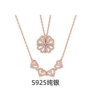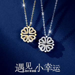 s925纯银四叶草项链一款两戴吊坠百搭满钻链条镶钻心心相印锁骨