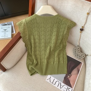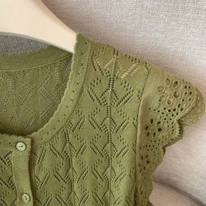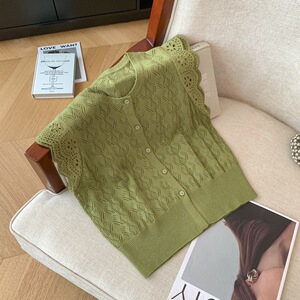 实拍夏季洋气外穿显瘦针织开衫女新款舒适百搭镂空纯色短袖上衣