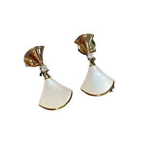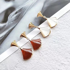宝加高品质天然白贝母小裙子耳钉女时尚百搭天然红玛瑙扇形耳环
