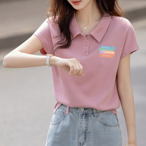 POLO领纯棉正肩短袖t恤女夏季2025新身显瘦多巴胺穿搭小个子上衣