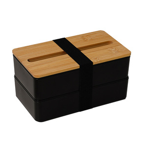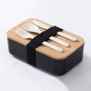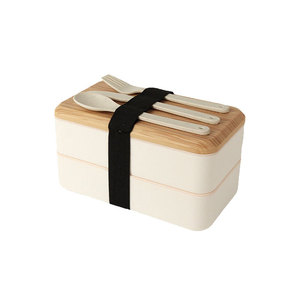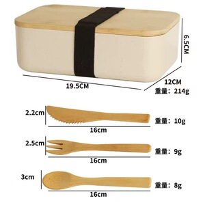 日式小麦秸秆餐具可进微波炉分格木盖饭盒便当盒大容量午餐盒厂家