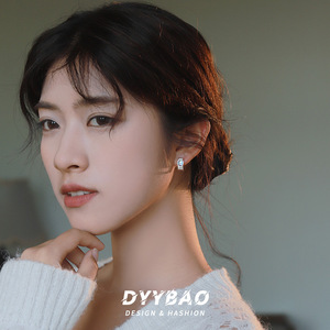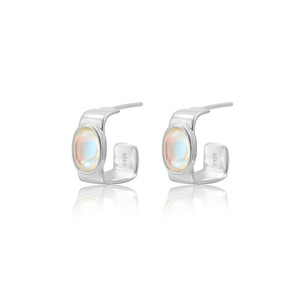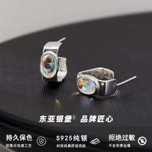 s925纯银月光石宽面耳钉女小众设计感百搭轻奢耳环送女友情人礼物