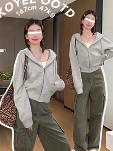 灰色短款卫衣外套女款2025春秋季新款小个子韩系穿搭正肩运动上衣