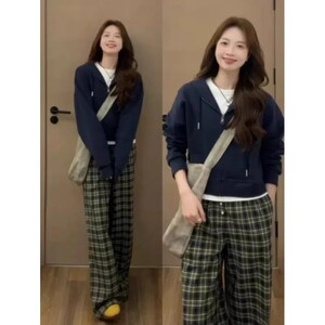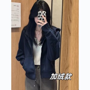 藏青色连帽短款【高腰显瘦】 【加绒款】