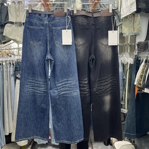 ヨーロッパステーションアップダウンプリーツジーンズ2025ルーズハイウエストストレートパンツカジュアルワイドレッグパンツトレンド