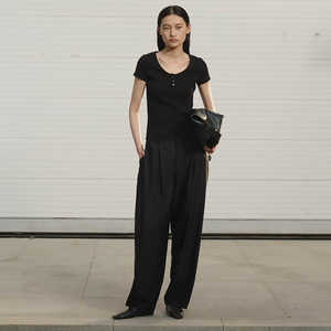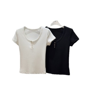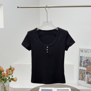 JN25夏新品百搭正肩三粒扣罗纹纯色短袖2色极简经典基础款亨利衫T