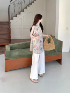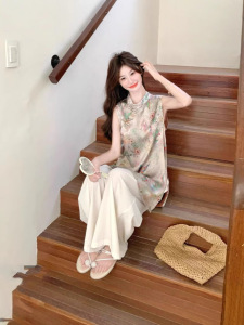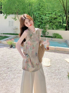 [Xia Die] 2025 新作夏オードレチャイナドレスノースリーブジャカードミッドレングスレトロトップライト高級シャツ
