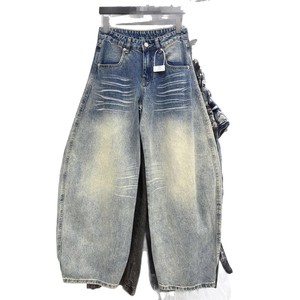 美式水洗立体猫须设计感牛仔裤女夏秋宽松显瘦百搭怀旧阔腿裤