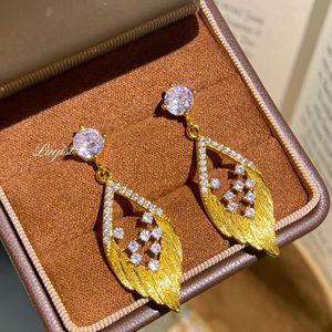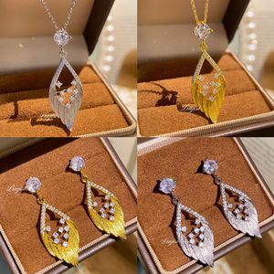 轻奢复古手工拉丝羽毛吊坠项链高级感丝光羽翼镶钻流苏耳环耳坠女