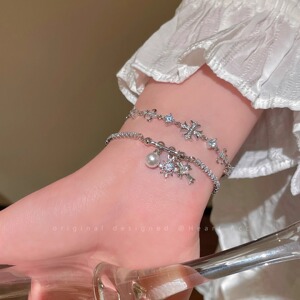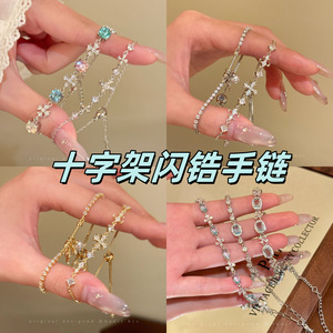 锆石雪花十字架珍珠叠戴手链轻奢高级感时尚通勤气质百搭手饰礼物