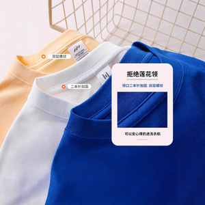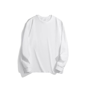 300g重磅纯棉长袖t恤男宽松纯色白色秋季圆领打底衫32支螺纹袖口