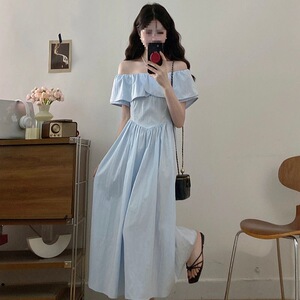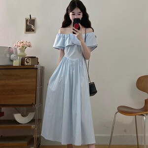 2025夏装新款胖mm大码女时尚设计感甜美一字肩收腰显瘦连衣裙